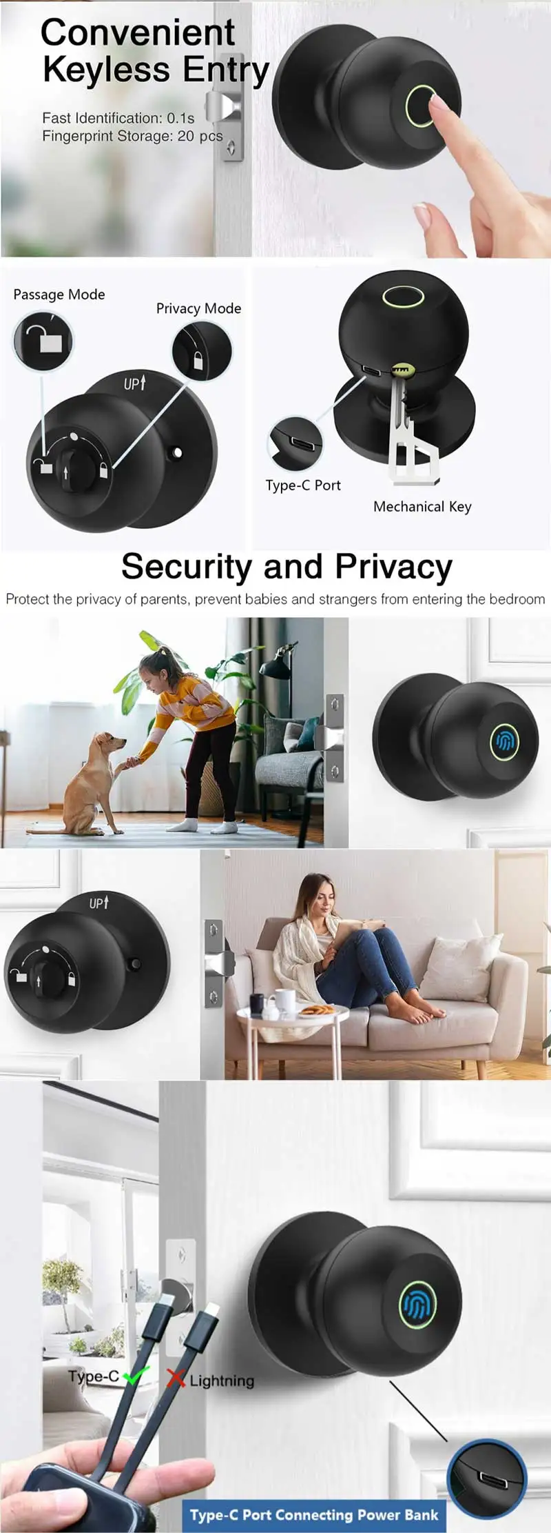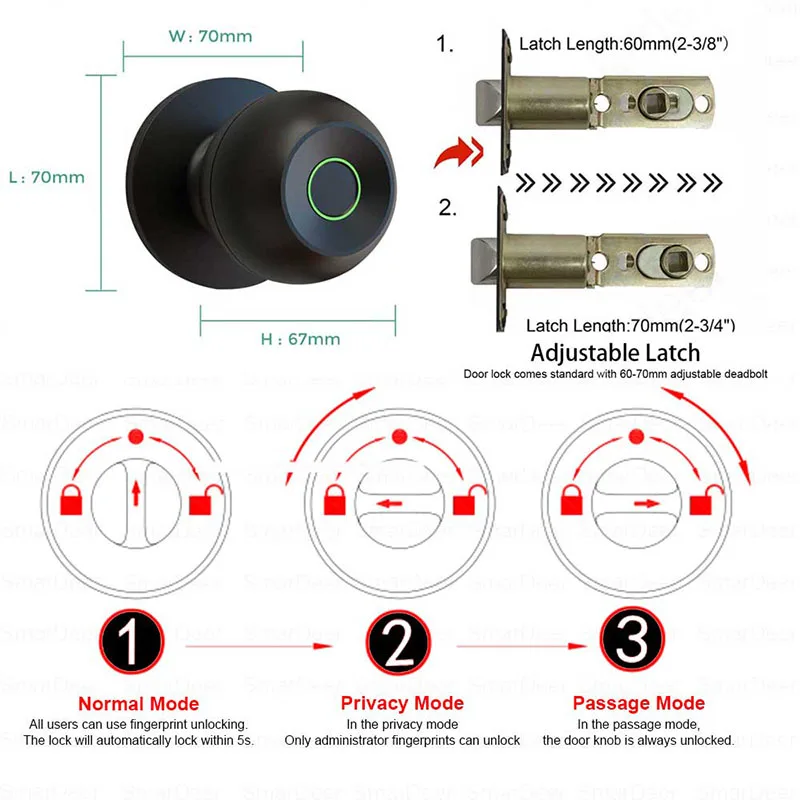 Doorknob Funcition: Biometric,Key & Keypad